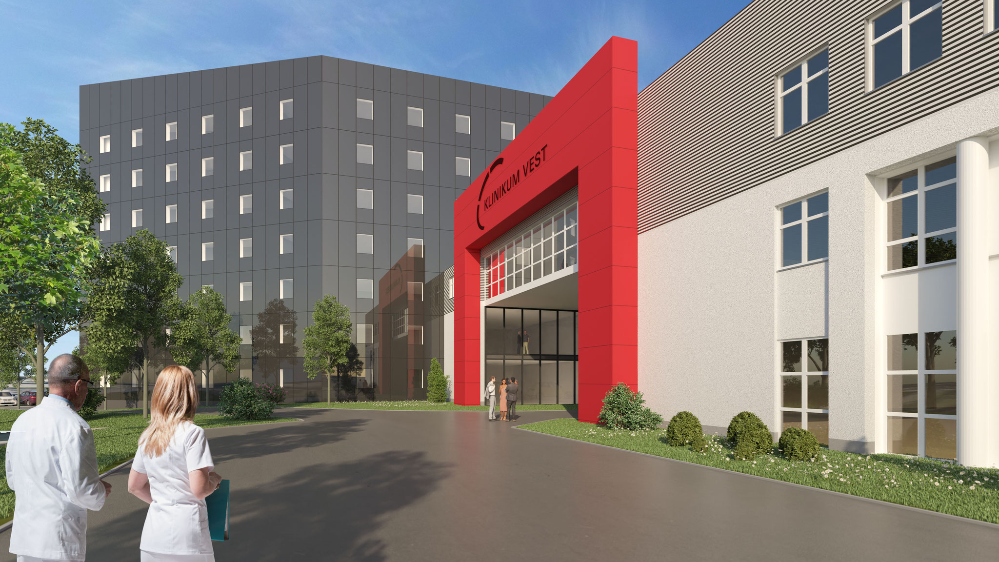 unter einem Dach soll die neue Kinder- und Jugendklinik am Standort Knappschaft Kliniken Paracelsus Marl bieten. In enger Zusammenarbeit mit unserem Auftraggeber, den Knappschaft Kliniken Vest, haben wir einen 5.600 m² BGF umfassenden, pfeilförmigen Erweiterungsbau entworfen. Dieser ist über ein Brückenbauwerk, das gleichzeitig das Tor zur Klinik bildet, mit dem OP-Bereich des Haupthauses verbunden. Das neue Gebäude soll im Erdgeschoss eine Notaufnahme beherbergen, darüber Räume für ambulante Eingriffe sowie im zweiten und dritten Obergeschoss Stationen mit modern ausgestatteten Bettenzimmern für bis zu 40 junge Menschen. Unsere Planung berücksichtigt die Bedürfnisse aller Altersgruppen vom Baby bis zum Teenager. Sie sieht neben farbenfroh gestalteten Bereichen auch Räume zum Ruhen sowie Flächen zum Spielen vor. Eltern sind willkommen, um ihre Kinder beim Gesundwerden zu begleiten.